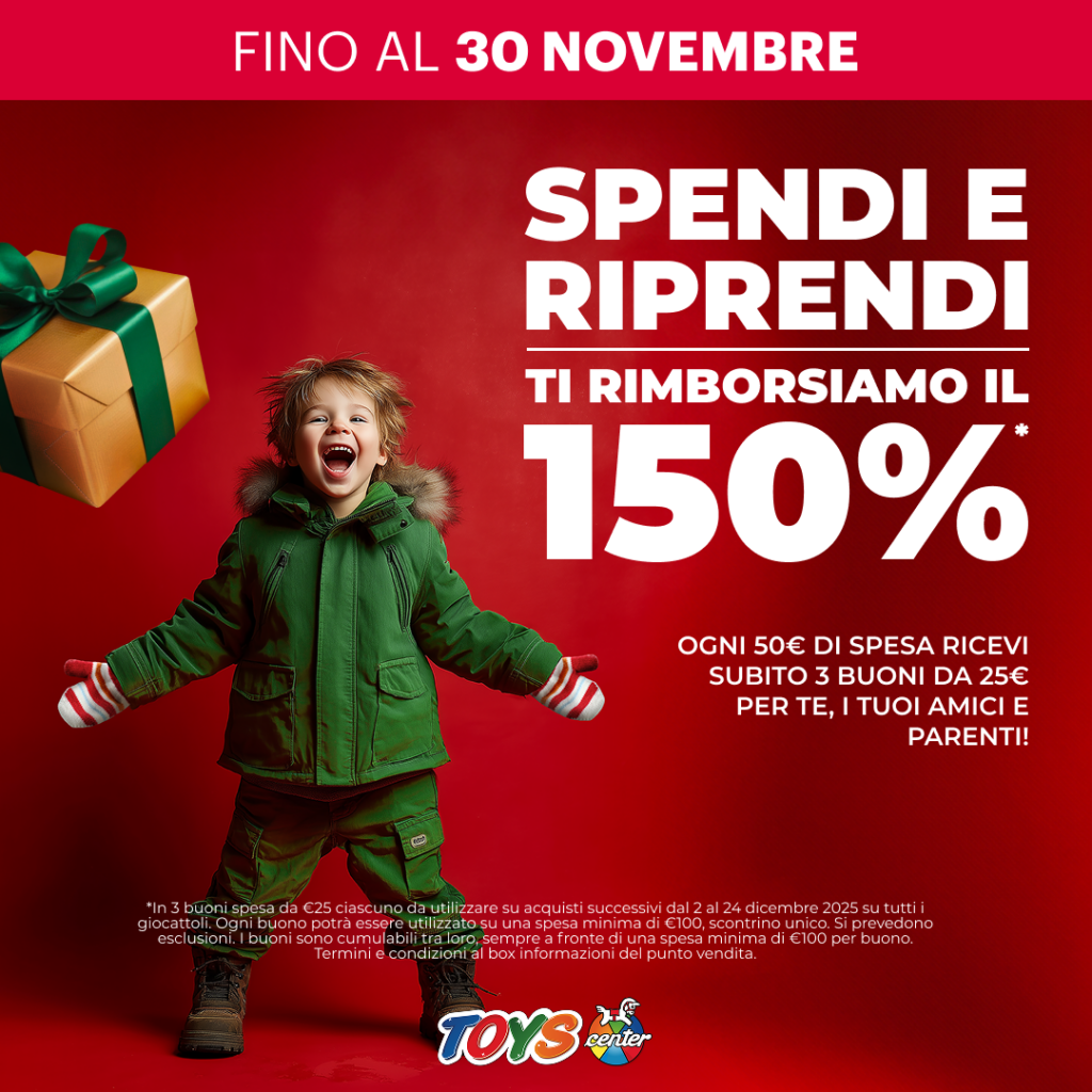 Toys Center, il più grande negozio in Italia per la famiglia che cresce. Ti aspettano i giocattoli delle migliori marche, ma anche i prodotti più sicuri per il divertimento all’aria aperta, libri, prodotti per la scuola, articoli di travestimento, articoli da regalo, articoli per il party.