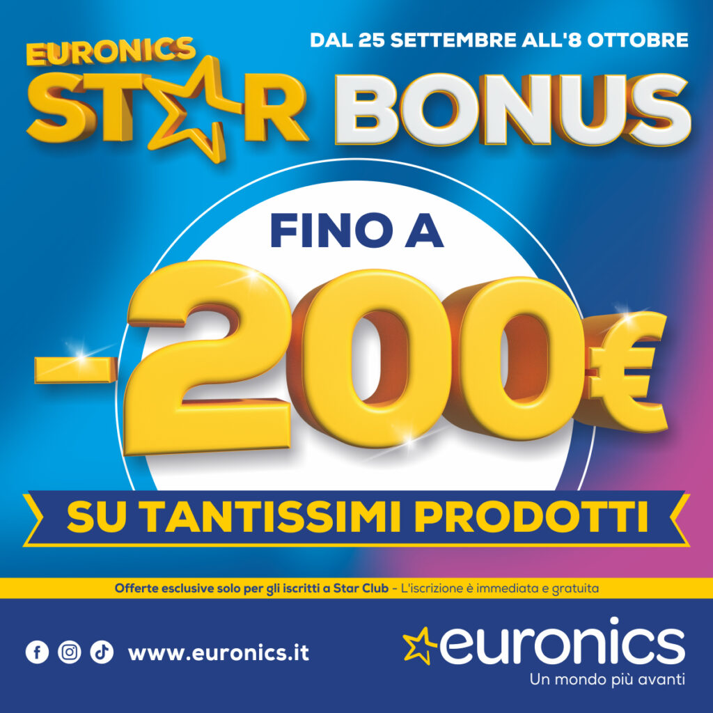 Da #EuronicsCDS c’è lo Star Bonus: fino a – 200€ su tantissimi prodotti già scontati! Vai a scoprirli in negozio entro l’8 ottobre!
